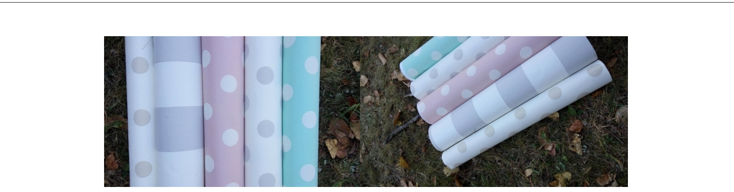 Znajdziecie tu ponadczasowe, eleganckie pasy w kolorystyce szaro-ecru, idealnie komponująca się z nimi hitowa tapeta w szare grochy oraz absolutną nowość tj grochy różowe i miętowe w negatywie.